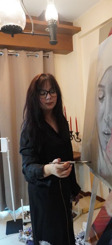Wanting to immortalize her love of dance in a painting, she took up the brush. Hence, the discovery of an insatiable need to experience spirituality in this creative expression. So at 17, without any formal training nor previously observed inclination, her art modality found her at its appointed time.